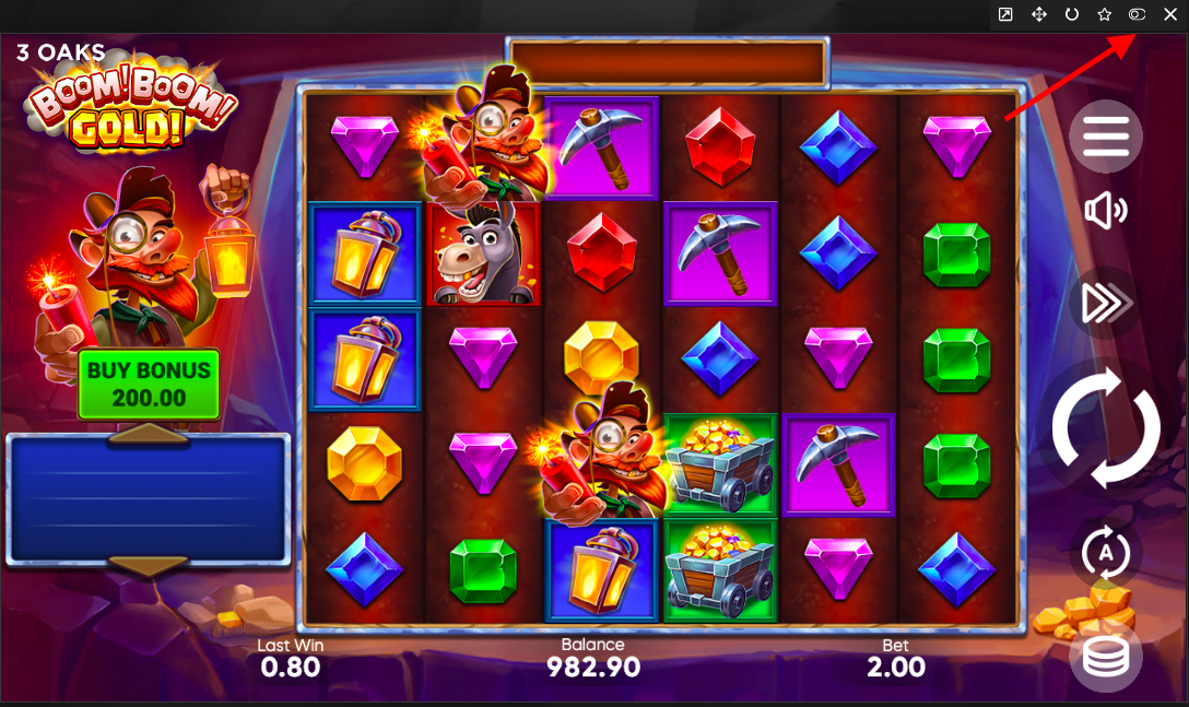 - Buy Bonus seçeneği. 4 Miner sembolünün çarklarda belirmesini beklemek istemiyorsanız, 100x baz bahsiniz karşılığında Buy Bonus özelliğini kullanabilirsiniz. Bu seçeneği etkinleştirdiğinizde, anında ücretsiz dönüş moduna geçiş yapar ve burada ek ücretsiz dönüşler veya yüksek çarpanlar yakalayabilirsiniz.